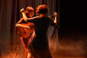 Chanson française couleur BrésilAurélie Tyszblat (chant), Verioca Lherm (guitare, voix, beat box mélodique), Catherine Reverseau (lumières) et Caroline Leboutte (mise en scène).